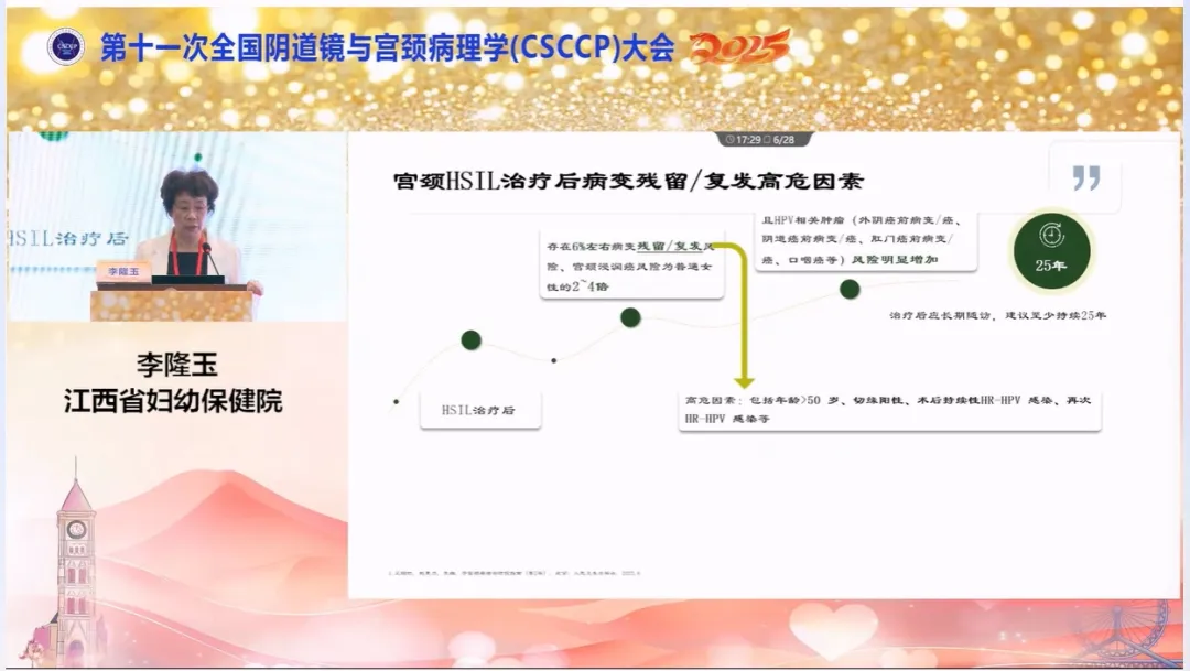 2. 宮頸HSIL治療后病變殘留/復(fù)發(fā)高危因素:存在6%左右病變殘留/復(fù)發(fā)風(fēng)險(xiǎn),宮頸浸潤(rùn)癌風(fēng)險(xiǎn)約為普通女性的2~4倍;