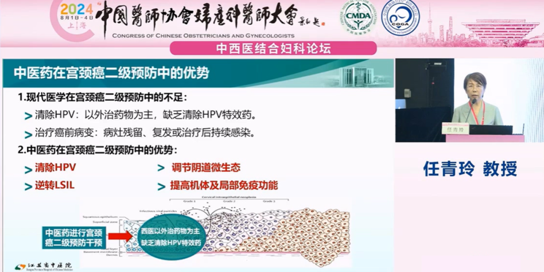 江蘇省中醫(yī)院任青玲教授就《中西醫(yī)結(jié)合宮頸癌防治一體化平臺建設(shè)》為題進(jìn)行報(bào)告: