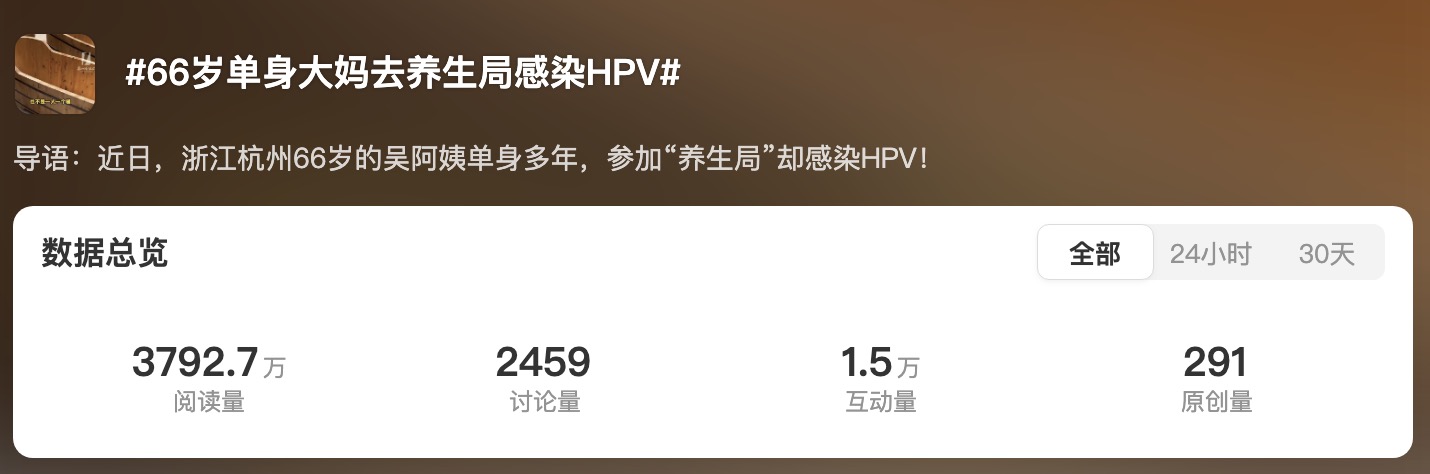 現(xiàn)在養(yǎng)生話題很火,人人都有自己的 “養(yǎng)生經(jīng)”,從晨起喝水到睡前泡腳,聊起來頭頭是道。但養(yǎng)生得科學,不然自以為在養(yǎng)生,實則是在 “養(yǎng)病”。最近一則新聞——“66歲單身大媽去養(yǎng)生局感染HPV”就引起了大家的討論。